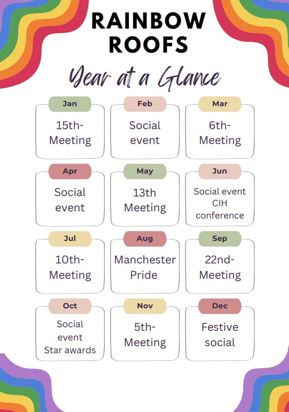Residents are welcome to join the monthly Rainbow Roofs meeting, where they will have the opportunity to discuss any ideas or areas where they might need support.